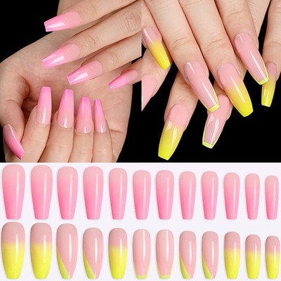 French Gradient Stiletto Natural Nails Coffin Nude Medium ... from www.dhresource.com What do you need to do gradient nail art? For as long as people have been getting manicures, there have been two primary shapes: Hey guys so in today's video i did these super cute pink gradient nails.